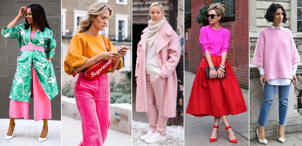 Różowy kolor doskonale komponuje się z neutralnymi odcieniami, takimi jak biały i szary. Biała bluzka zestawiona z różową spódnicą czy szarym płaszczem to perfekcyjne połączenie na co dzień. Neutralne tło umożliwia różowi zaistnienie i podkreślenie jego delikatności, równocześnie nadając stylizacji elegancki charakter. Warto bawić się teksturami, np. zestawiać gładkie tkaniny z koronkami, co doda głębi każdej stylizacji.
